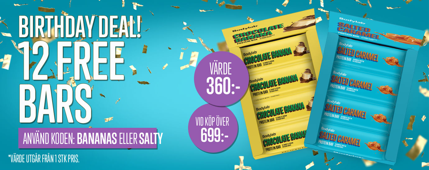 Hooray! Bodylab 22 years Er du klar for en tilbudsfest så vanvittig at selv den mest entusiastiske tilbudsselgeren ville bedt oss om å skru litt ned? Bodylab fyller 22 år, og vi har tenkt å gi full gass med salgsklisjeer som tilbudsjakt, knivskarpe rabatter og køtilbud! Du sparer opptil 30 % på noen av våre allerstørste bestselgere og nyeste… ja, nyheter. Sjekk ut alle våre bursdagstilbud her! |