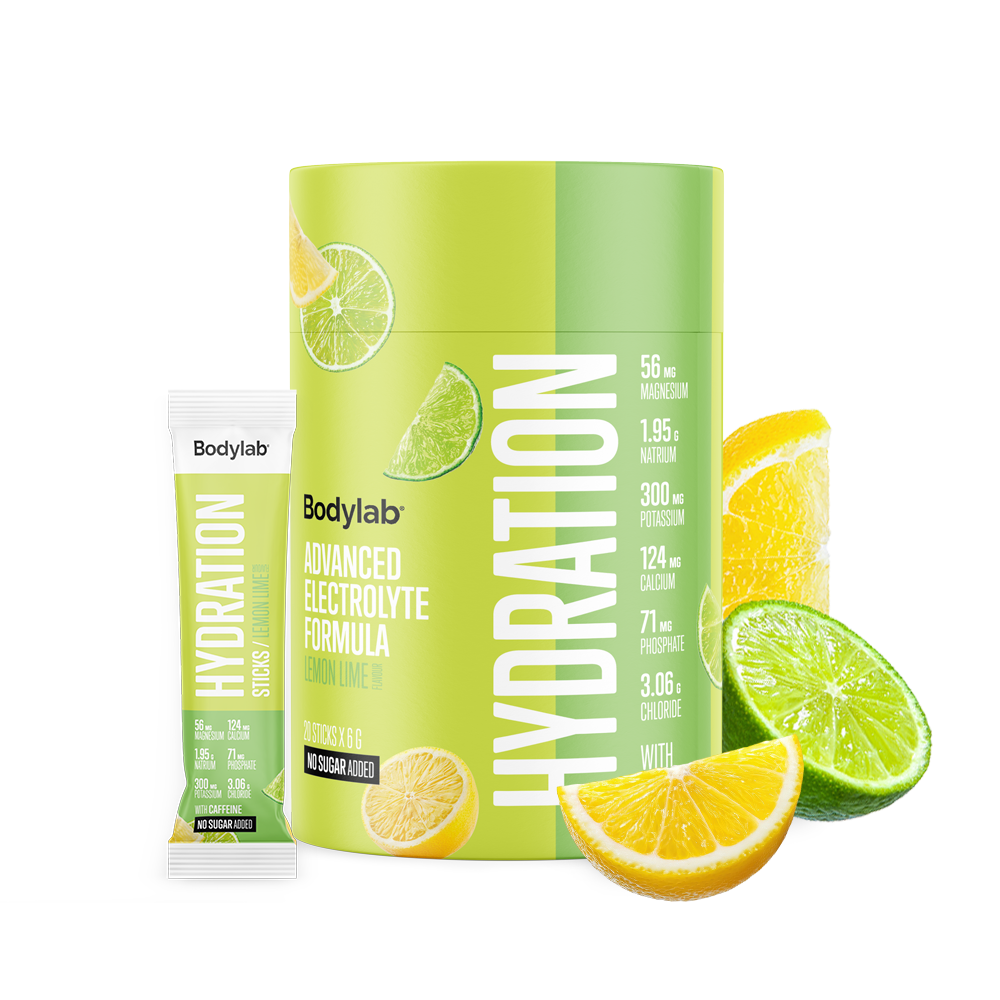 Bodylab Hydration Sticks er skapt for deg som vet at hydrering handler om mer enn bare å drikke vann. Vi gir deg et komplett og kompromissløst hydratiseringssystem med seks elektrolytter, som har en rekke vitenskapelig dokumenterte effekter. Du får både magnesium, natrium, kalium, kalsium, klorid og fosfat – pluss C-vitamin, vitamin B6 og koffein*. Alt nøye avstemt ned til minste detalj for å opprettholde væske- og elektrolyttbalansen.