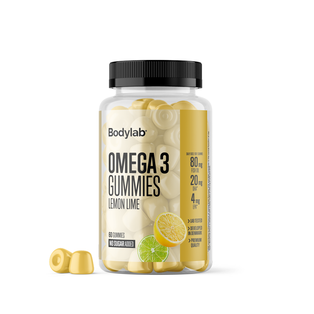 Det har vi gjort noe med. Bodylab Omega 3 Gummies er så myke, fruktige og deilige at de får deg til å glemme alt om kjedelige tabletter og «jeg burde». Og best av alt: De smaker ikke fisk. Vi har i stedet gitt dem en frisk, fruktig lemon-lime smak med en deilig, rund sødme – litt som å drikke en kald sommerdrink. Bare i vingummiform.