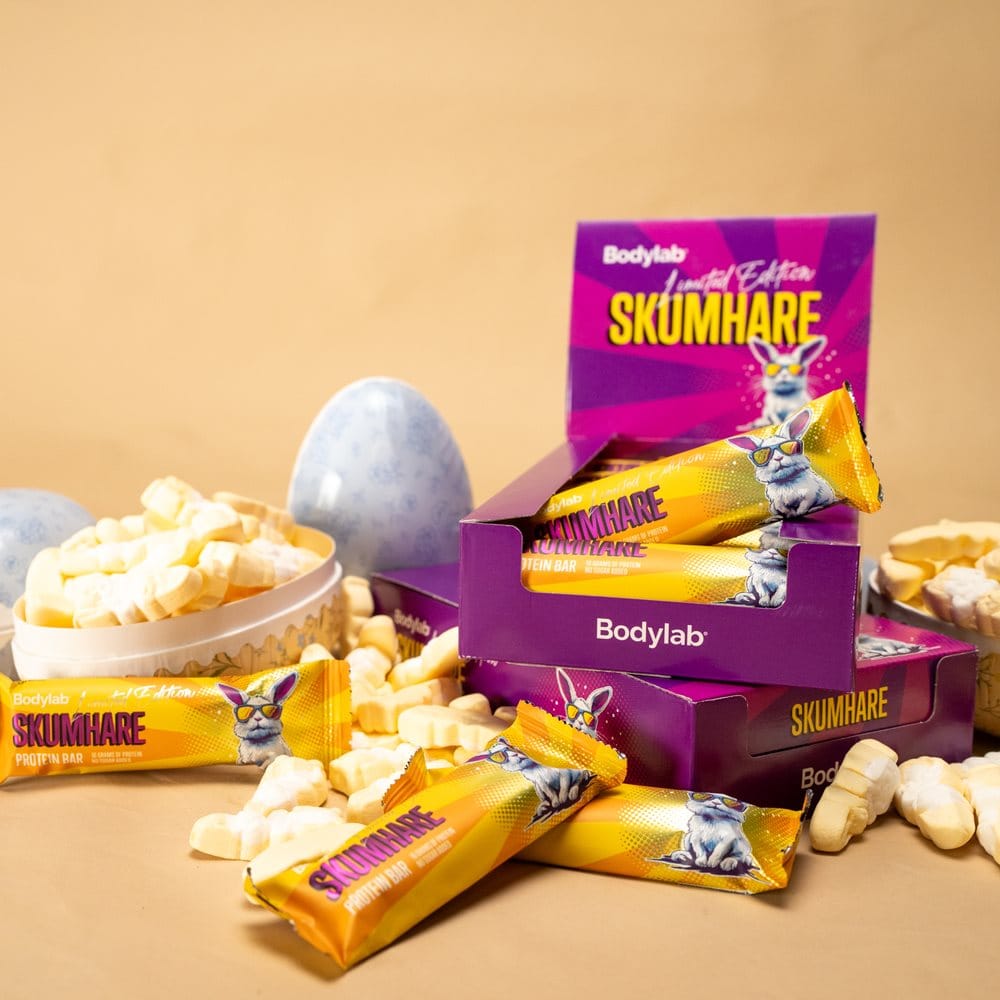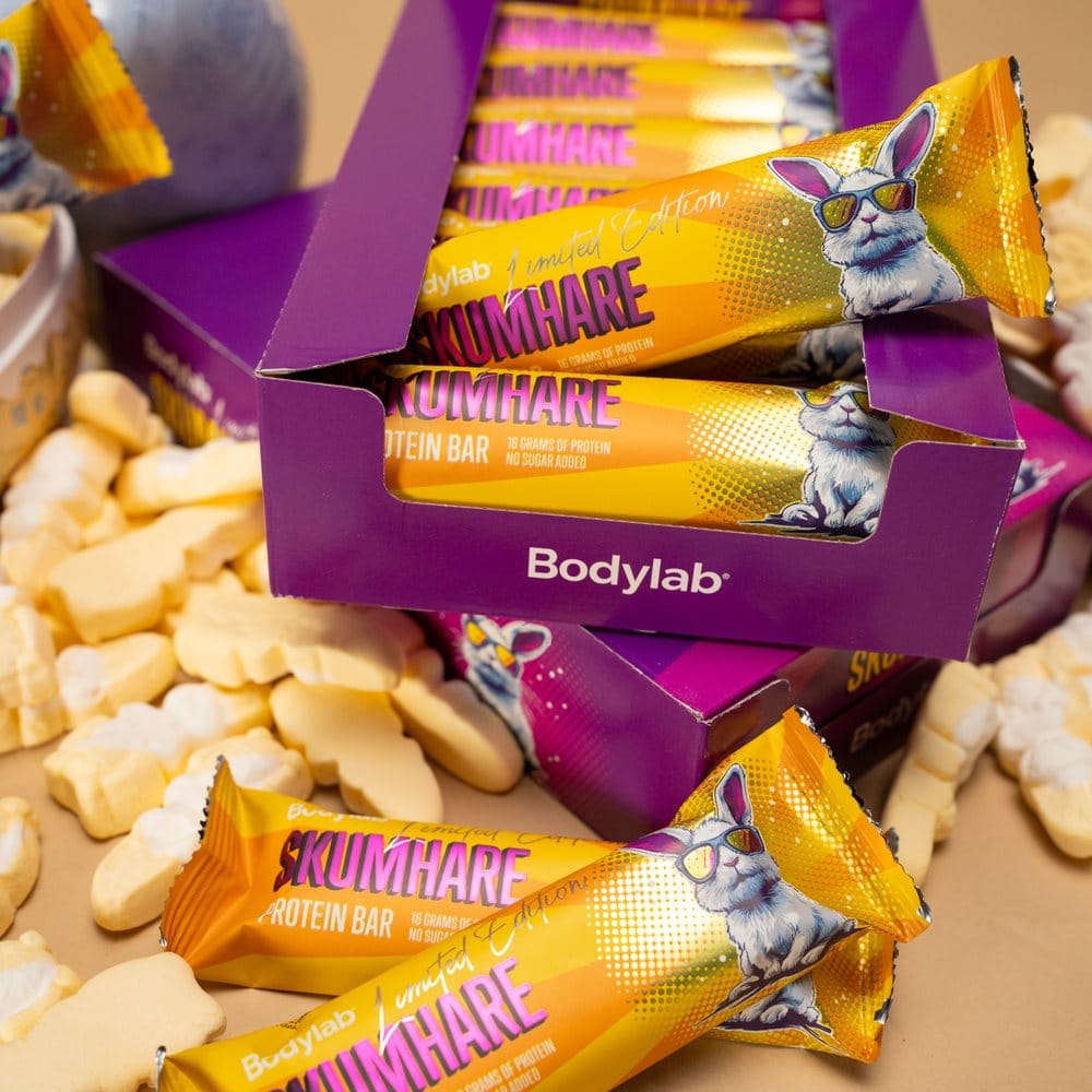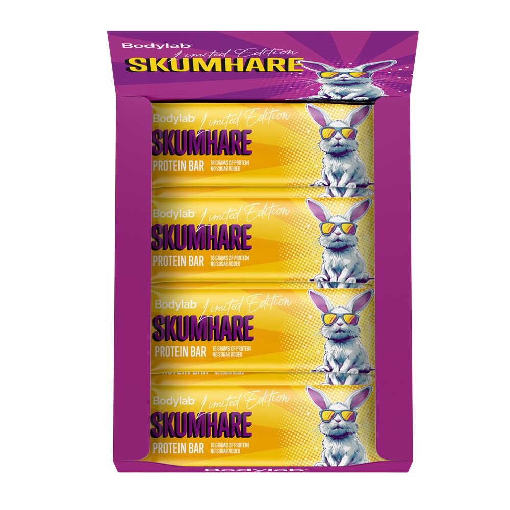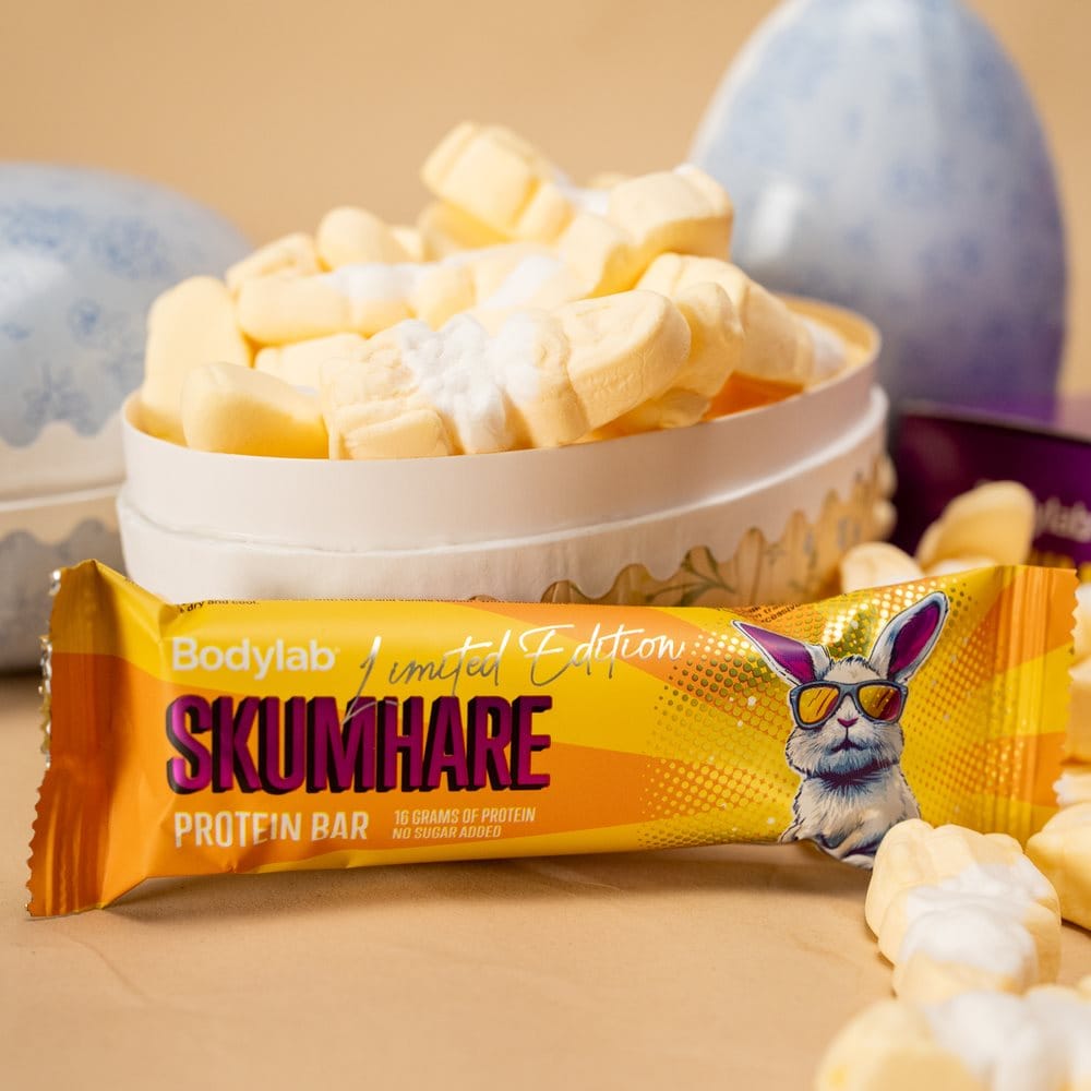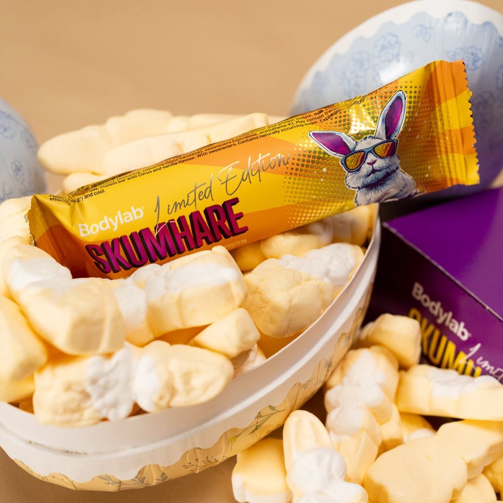 Møt Skumhare Protein Bar – en limited edition proteinbar inspirert av påskeharer og påskegodt. Det er vår versjon av et påskeegg. Bare i en versjon som faktisk gjør noe for dine gains. Den inneholder 16 gram kvalitetsprotein og 0 gram tilsatt sukker, så du trygt kan slenge en ekstra bar i treningsbagen.