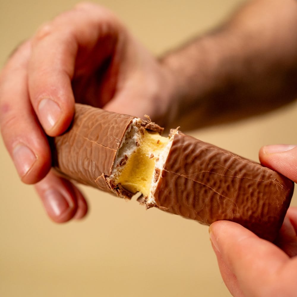 Se for deg en påskehare som faktisk gjør noe for dine gains – og si hei til Skumhare Protein Bar. Den har en myk kjerne av ”påskeskumaktig” krem med pisket, luftig marshmallowkrem på toppen (det er minst like godt som det høres ut), og til slutt er hele herligheten overtrukket med deilig melkesjokolade som smelter på tungen.